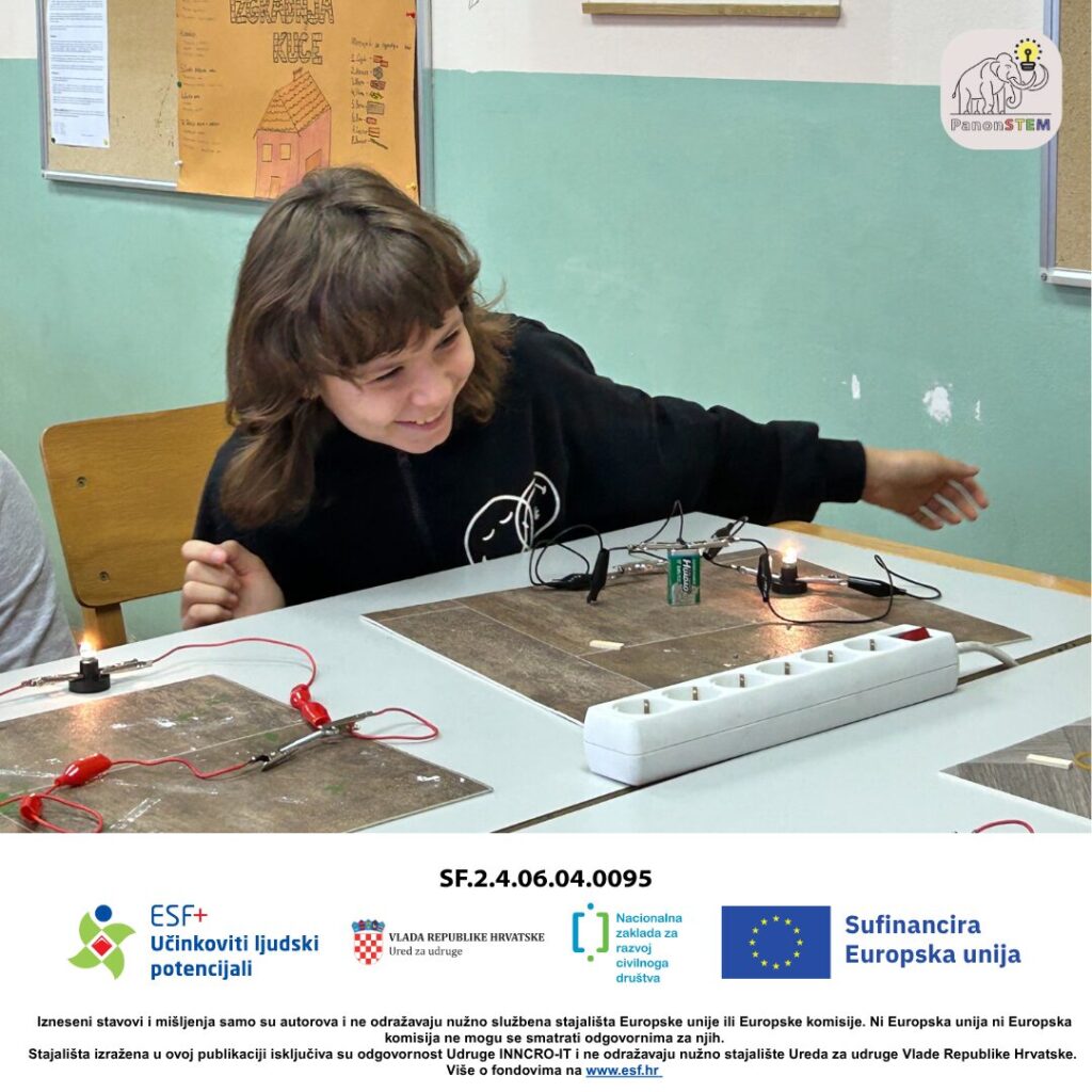 Polaznici su kroz zanimljive i praktične aktivnosti naučili razlikovati vodiče i izolatore te bolje razumjeti osnovne dijelove strujnog kruga. U eksperimentalnom dijelu radionice ispitivali su koji materijali provode električnu struju, a koji ne, testirajući predmete poput drveta, plastike i metala te sami donosili zaključke na temelju opažanja.